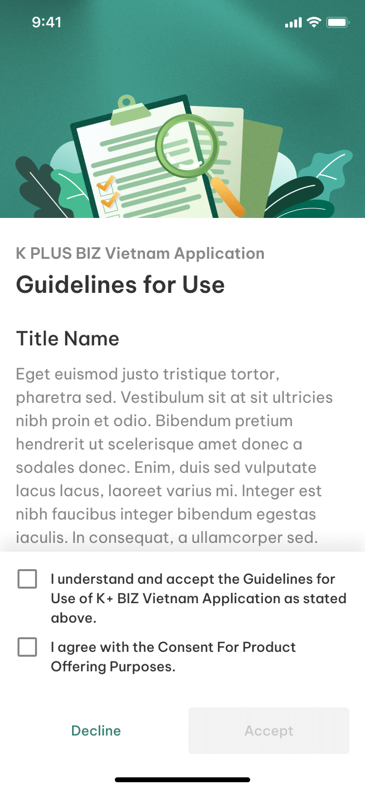 8. Accept Guidelines for Use and Personal Data Consents
