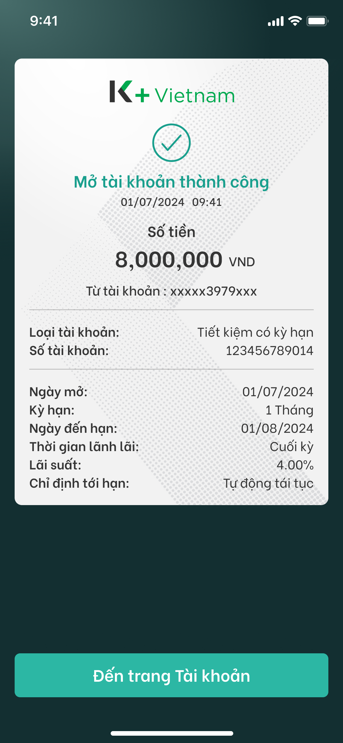 9. Kết quả mở tài khoản thành công