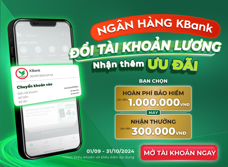 - Hoàn tiền 5%* mỗi chi tiêu bằng thẻ ghi nợ KBank